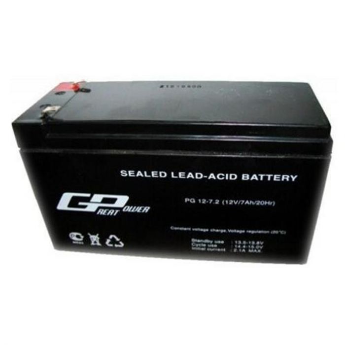 Свинцево-кислотна акумуляторна батарея Great Power PG 12-7,2 (12В 7,2Ач) призначена для роботи переважно в буферному режимі. Служить для електроживлення ехолота, пожежо-охоронних систем сигналізацій, контролю та управління доступом, в джерелах безперебійного живлення Eaton, APC, Riello, Socomec, Delta, GE і тд.