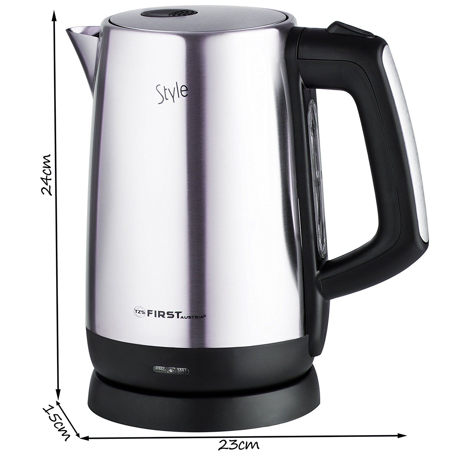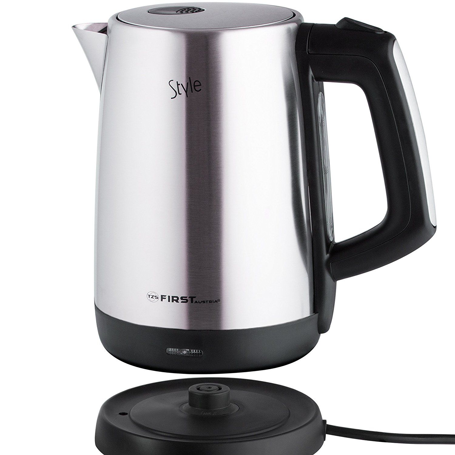 Корисний об'єм електрочайника First FA 5411-2: 1,7л. Його цілком достатньо для задоволення потреб сім'ї із трьох-чотирьох осіб. Потужність чайника дозволяє закип'ятити воду трохи більше трьох хвилин. За типом нагрівального елемента модель відноситься до дискового (прихованого) типу. Перевагою дискового типу над спіральним є висока площа контакту з водою та швидкість її нагрівання. Трубчастий електричний нагрівач (ТЕН) розташований у днищі корпусу.