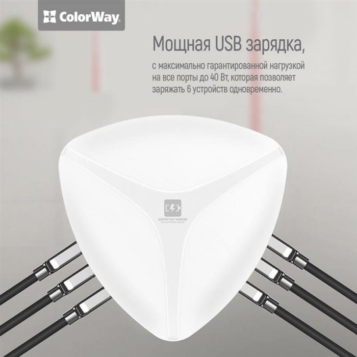 Мережевий зарядний пристрій ColorWay (1USBx3A, 5USBx2.4A) QC3.0 White (CW-CHS06QW)