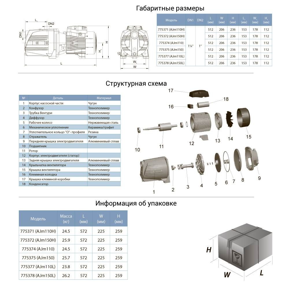 <b>Насос відцентровий самовсмоктуючий 1.1кВт Hmax 60м Qmax 60л/хв LEO 3.0 AJm110H (775371)</b>