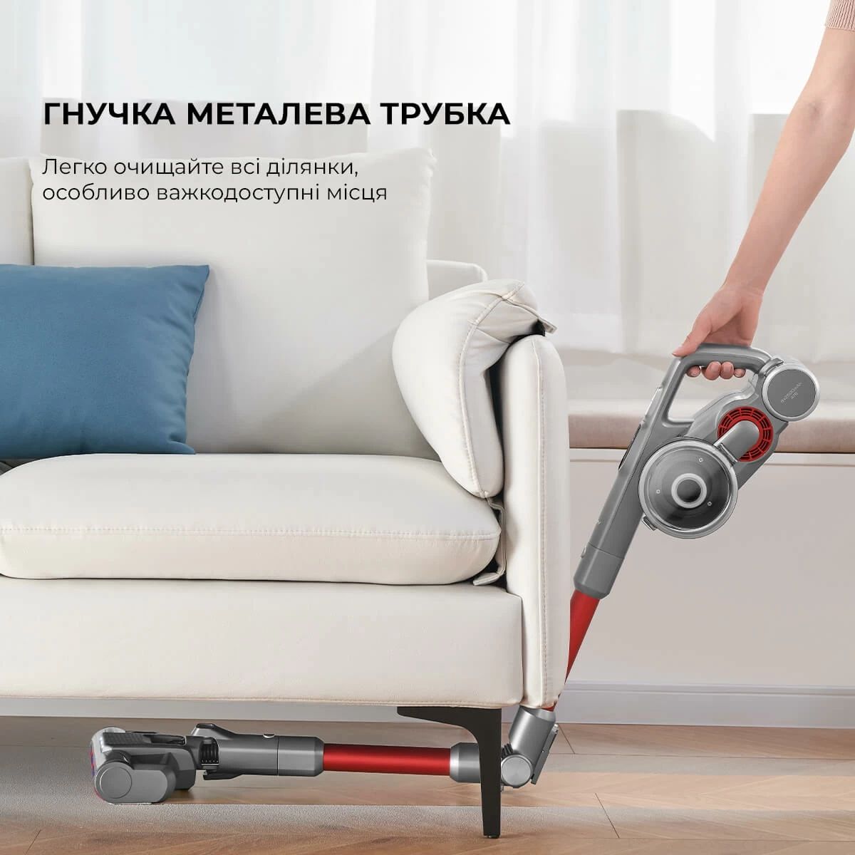 Гнучка металева трубка може повертатися на 90 градусів вгору та вниз. Завдяки цій гнучкості ви можете легко прибирати всі ділянки, особливо важкодоступні низинні ділянки, не встаючи на коліна і не присідаючи.