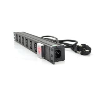 Подовжувач Merlion 6 розеток, 19", 1U, с вимикач., с адаптером живлення C13, 1.8 м (1U-M6C13-K-C13/15155)