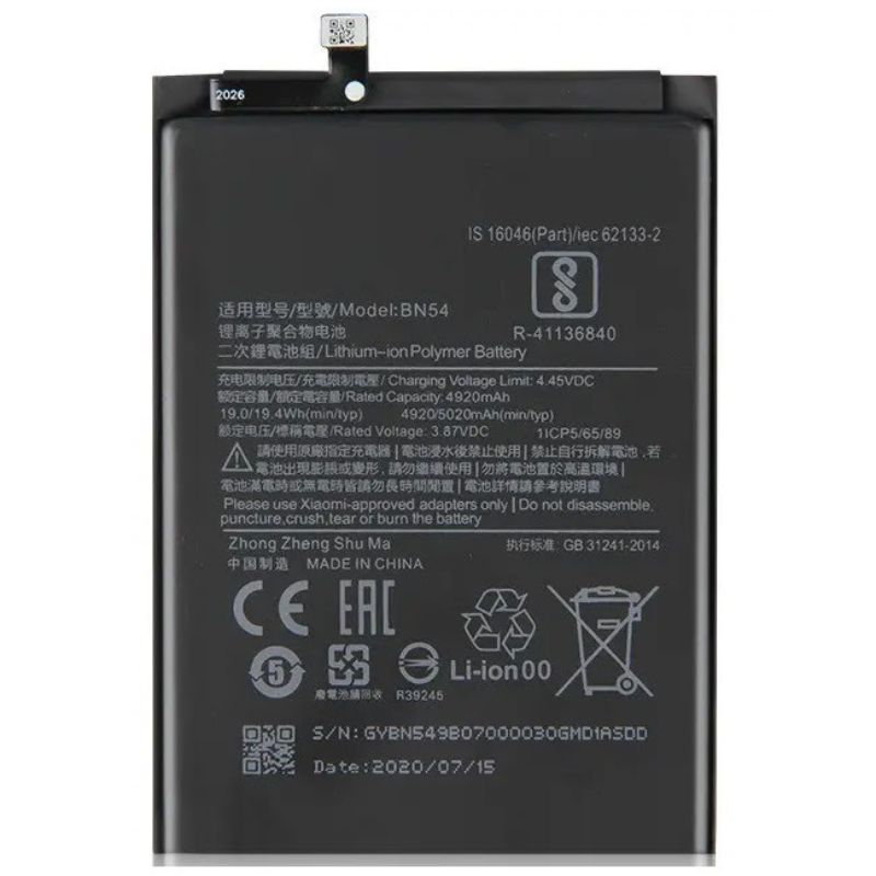 АКБ Xiaomi Redmi 9/Redmi Note 9 (BN54) (оригінал 100%, тех. упаковка) (A20233)