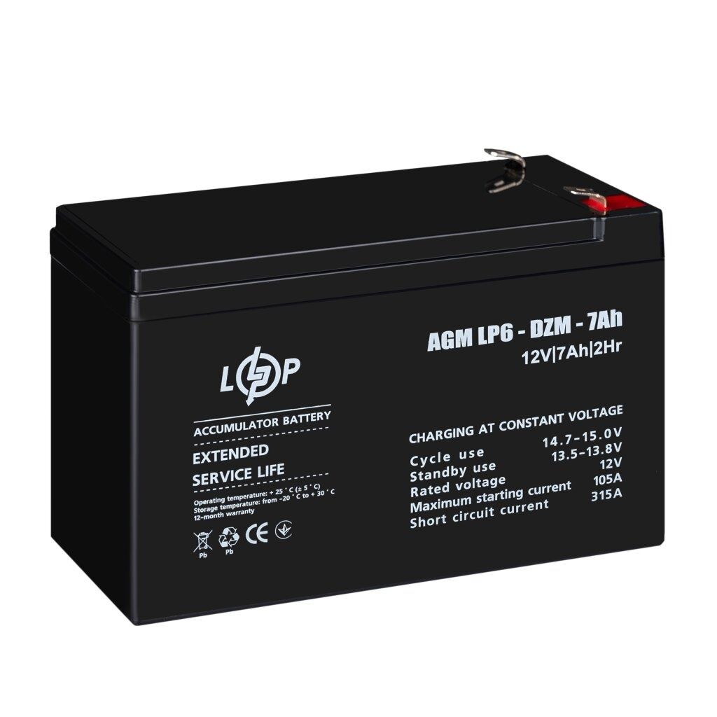 Акумуляторна батарея LogicPower 12V 7AH (LP 6-DZM-7 Ah) AGM