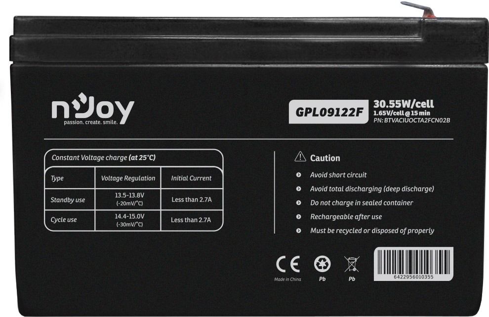 Акумуляторна батарея Njoy GPL09122F 12V 9AH (BTVACIUOCTA2FCN02B) AGM