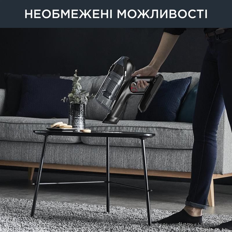 Потужність всмоктування до 200 Вт повітря (у режимі Boost), автономність до 1 години 10 хвилин (у разі використання ручного пилососа в режимі Eco), вдосконалена фільтрація до 99,9% пилу й алергенів.