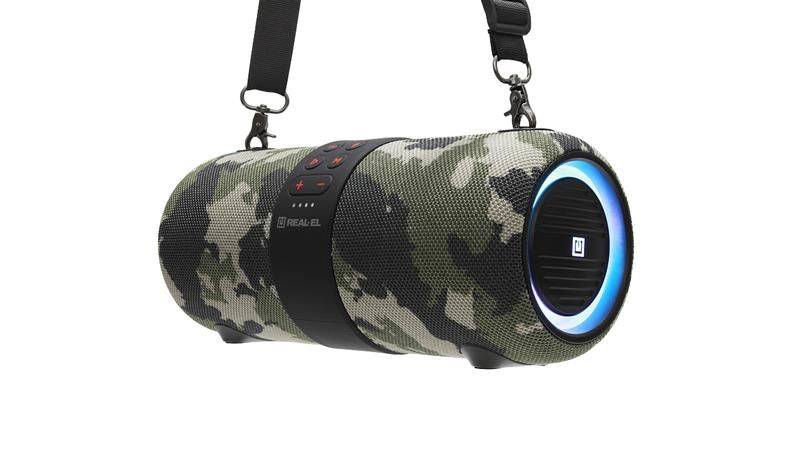 Мультимедійна портативна акустична система REAL-EL X-733 поєднує сучасний дизайн та якісне звучання.