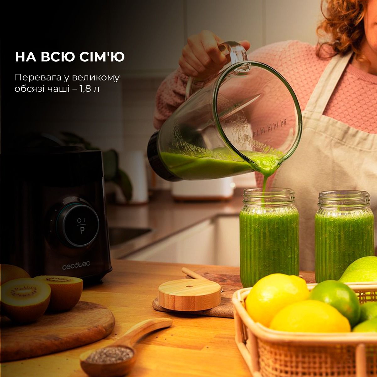 Вітаємо! Ви знайшли той самий блендер, який ідеально справляється із завданням приготувати смузі, крем-суп, коктейль чи пюре. CECOTEC Power Black Titanium 1800 Advance підійде для шанувальників простої, вишуканої гастрономії. Об’єм чаші 1,8 л дозволяє готувати суп або пюре відразу на кілька разів або велику компанію. Титанові леза і забезпечать ретельне подрібнення до однорідної консистенції, а програми допоможуть досягти бажаної текстури.
