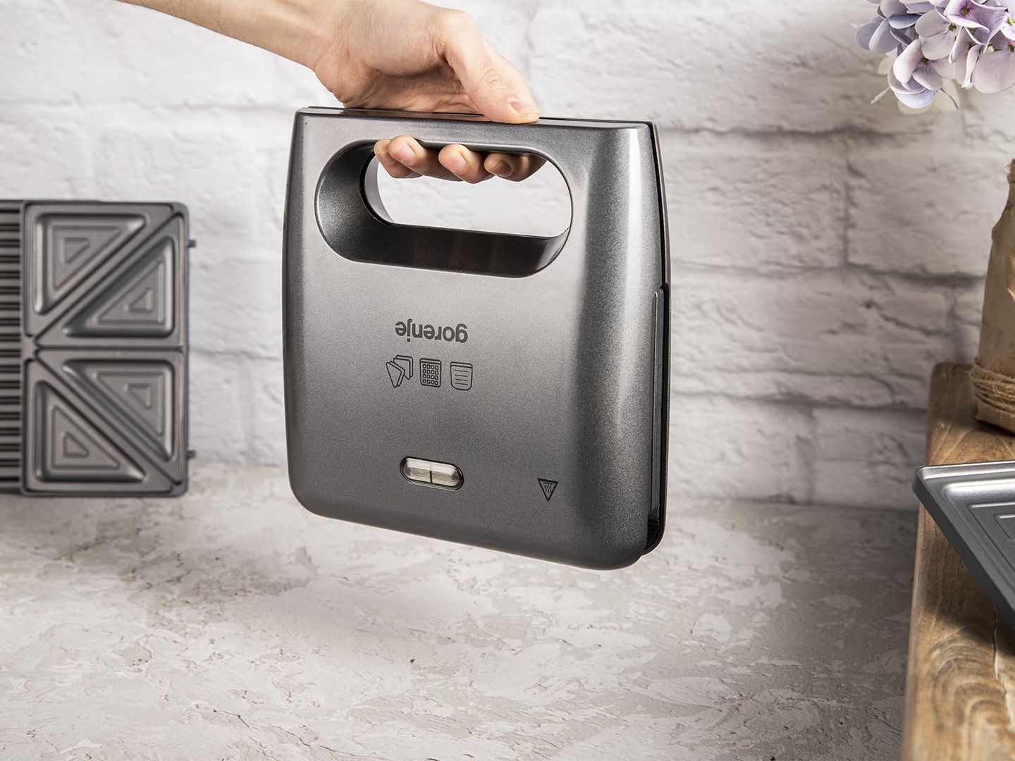 Мультимейкер (Бутербродниця-Вафельниця-Гриль) Gorenje SM703GCG Прилади цієї лінійки швидко приготують здорову їжу, м’ясо, риба, овочі або смачний гарячий бутерброд. Швидкий час приготування, потужне і рівномірне нагрівання, а також безпосередній контакт із жароміцними пластинами запечатують соки в продуктах, тим самим зберігаючи їх усі поживні властивості. У комплектації вона має пластини для гриля та приготування вафель. Тому за допомогою даного приладу ви зможете урізноманітнити раціон домашнього меню, приготувавши на грилі невеликі порції м’яса, риби чи овочів, а також порадувати рідних смачними вафлями бельгійськими.