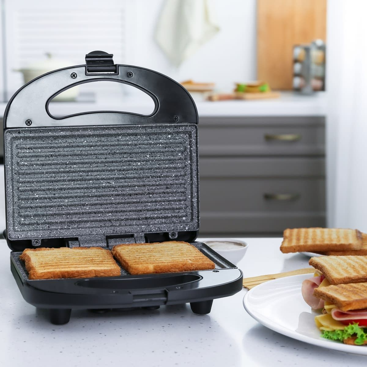 Бутербродниця MG-367 має всі необхідні функції для того, щоб швидко приготувати смачні та поживні сендвічі. Одночасно в ній можна випікати відразу по 4 сендвічі, краї яких щільно зліплюються бортиками форм, надійно зберігаючи начинку всередині. Корпус виготовлений із високоякісного термостійкого пластика чорного кольору. Тип деко – підсмажений сендвіч. Нагрівальний елемент потужністю 656 Вт забезпечує швидке та рівномірне нагрівання двох робочих поверхонь з керамічним покриттям. Бутербродниці Magio дуже зручні в користуванні, сендвічі та вафлі не підгорають і легко витягуються. Завдяки компактним розмірам та фіксатору бутербродницю зручно зберігати. На кришці є світлові індикатори живлення та готовності до роботи, що полегшує контроль процесу приготування.