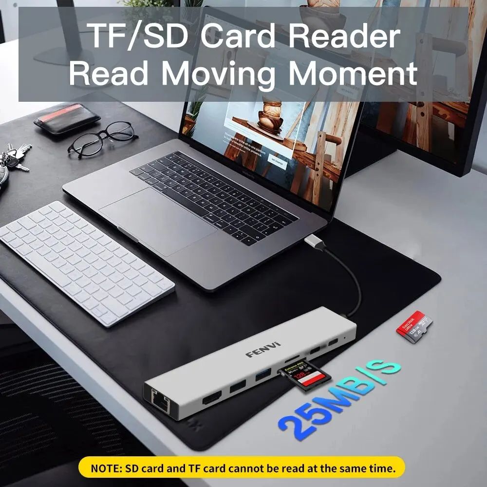 У цьому універсальному концентраторі FENVI F-C801H Type-C є все необхідне для розширення можливостей вашого пристрою. Завдяки HDMI 2.0, 1 порт USB 3.0, 1 порт USB 2.0, зарядці PD, передачею даних, слотам для карток SD і TF і Ethernet, та порту Type-C для передачі даних, ви можете легко підключатися до кількох периферійних пристроїв і насолоджуватися швидкою та стабільною швидкістю передачі даних і заряджання.