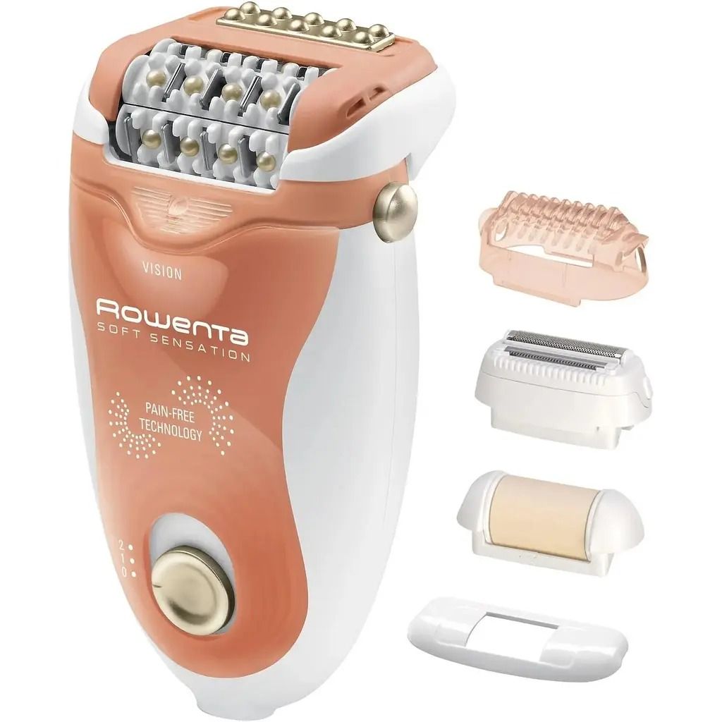 Епілятор Soft Sensation – ідеальне рішення для безболісної епіляції. Його інноваційна система знеболює шкіру завдяки вібруючій головці, що забезпечує епіляцію без стресу та болю. Завдяки запатентованій мікроконтактній технології епілятор забезпечує ідеальний контакт із контуром шкіри щоразу, навіть у найчутливіших зонах і на короткому волоссі. Як результат – гладка шкіра та безболісний процес видалення волосся. У комплекті зі зручним підсвічуванням, насадкою для відлущування шкіри, практичним чутливим аксесуаром, насадкою для гоління, триммером для бікіні з гребінцями і знімними частинами, які можна мити, Soft Sensation - це інноваційне рішення для безболісної епіляції.