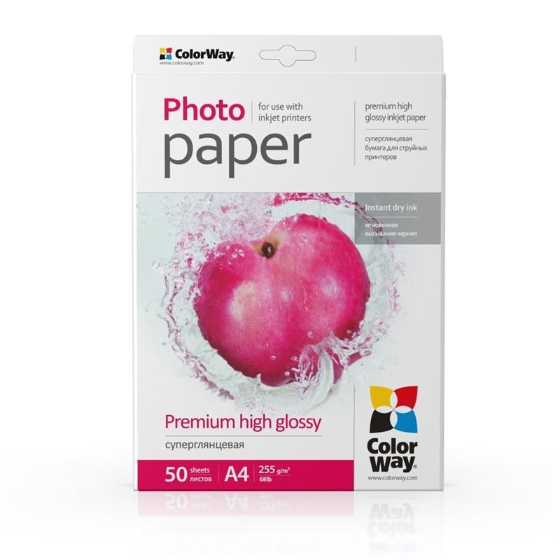 Фотопапiр ColorWay суперглянсовий 255г/м2 A4 50л (PSG255050A4)