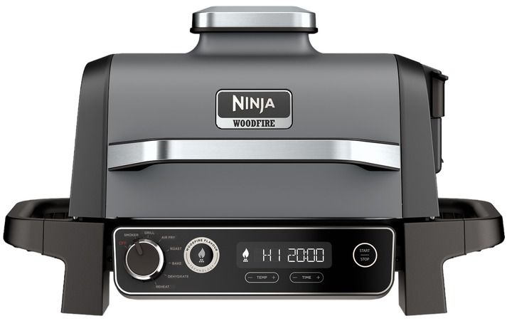 Комплектація:пласка ємність для гриля; кошик для фритюру; знімний коптильний ящик; піддон для збирання жиру; лопатка; основний блок; пеллети Ninja Woodfire.