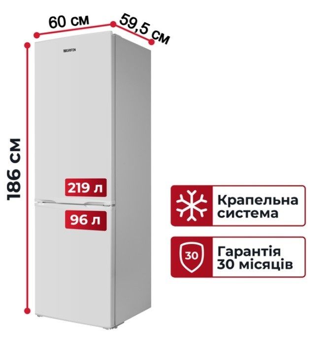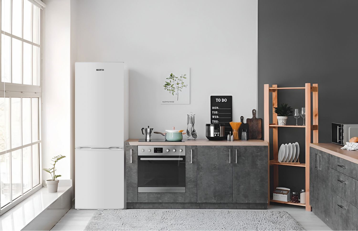 Окремо стоячий холодильник з морозильною камерою (комбінований) від Grifon - ідеальне співвідношення якості та ціни. Зовнішній вигляд - тотальний мінімалізм, впишеться в інтер'єр будь-якої кухні.
