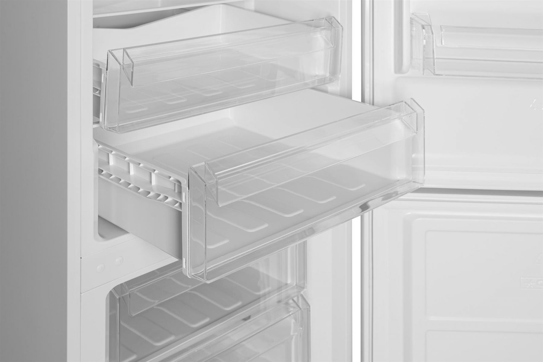 Холодильний відсік зверху освітлюється типом LED і закритий напівпрозорою кришкою. 3 скляні полиці з пластиковими "обідками" вміщують в себе максимальну кількість продуктів. Усередині розташовані панель налаштувань та інтерфейс користувача LED. Морозилка складається з трьох прозорих ящиків.