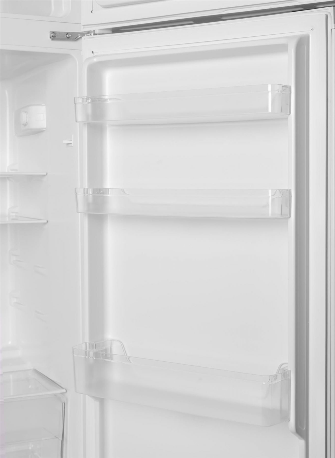 У холодильній шафі об'ємом 168 л розташовані дві полиці зі скла. Вони розміщують на собі невеликий продуктовий склад і захищають нижні полиці від пролитих продуктів або крихт. Один пластиковий ящик з відмінною загальною температурою і підвищеною вологістю, для зберігання свіжих овочів і фруктів, а також зелені. У морозильній камері на 37 літрів є скляна морозильна полиця, що розташована зверху над продуктовими полицями. Дверна стійка оснащена трьома додатковими нішами-підставками із пластику.