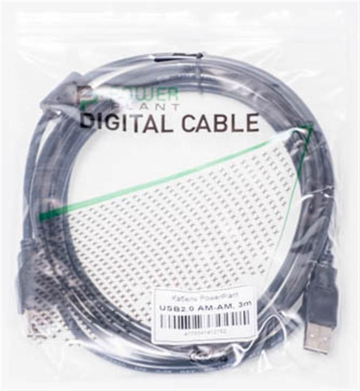 Кабель PowerPlant (KD00AS1215) USB2.0(AM)-USB2.0(AM), 3м, One ferrite, Black