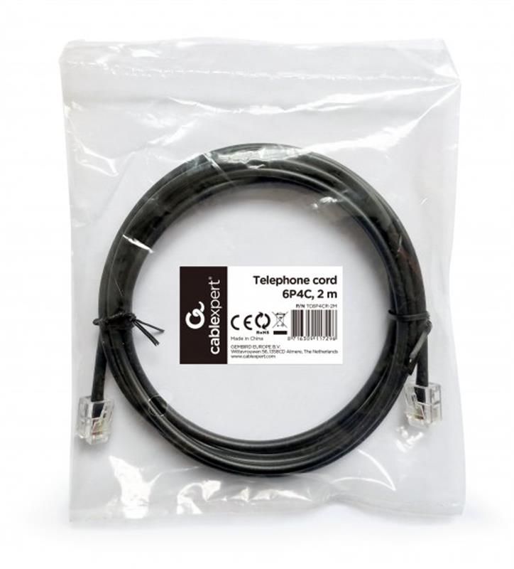 Кабель телефонний Cablexpert (TC6P4CR-2M) CCS, 6P4C, 2м, чорний