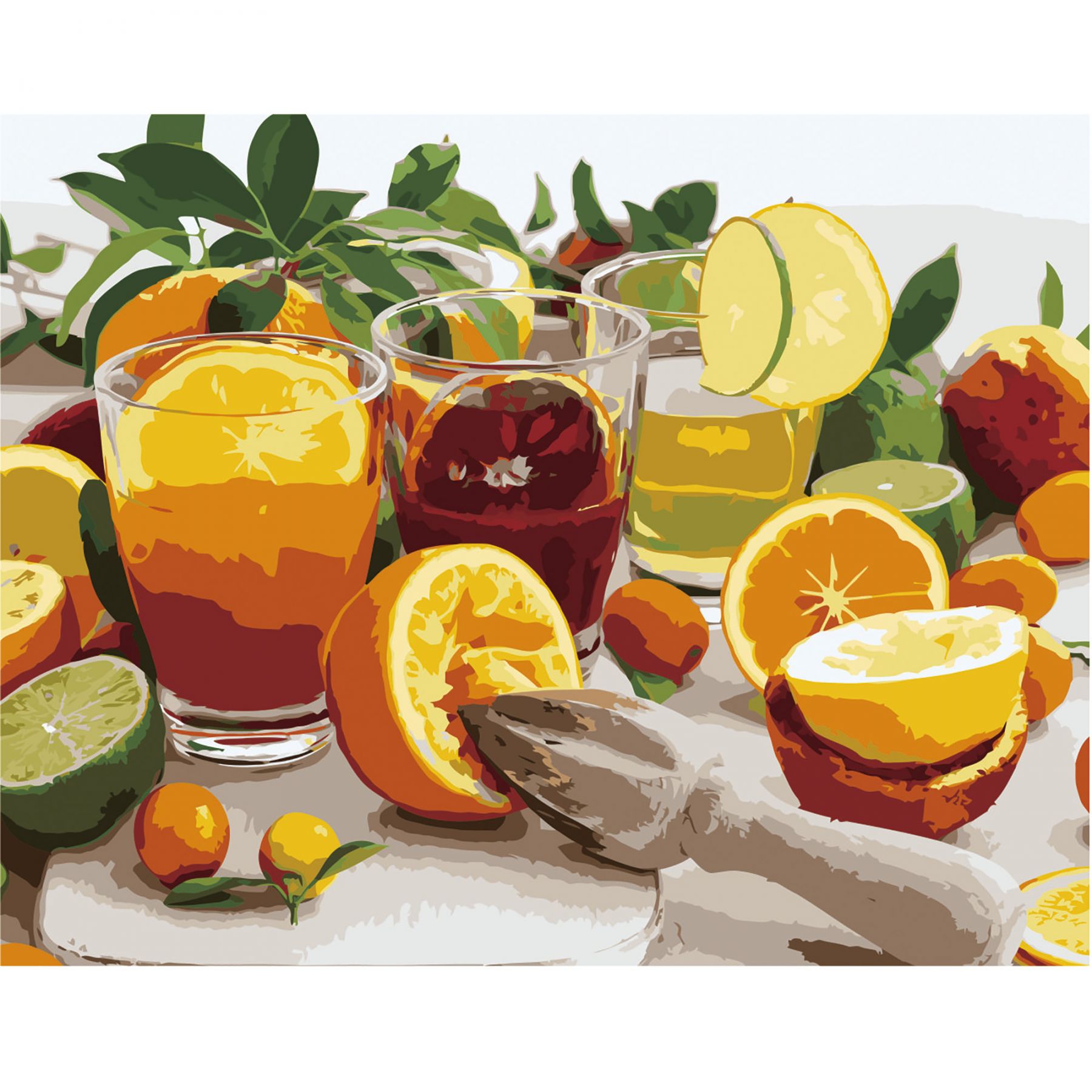 Картина за номерами Strateg ПРЕМІУМ Цитрусовий натюрморт з лаком розміром 40х50 см VA-2680