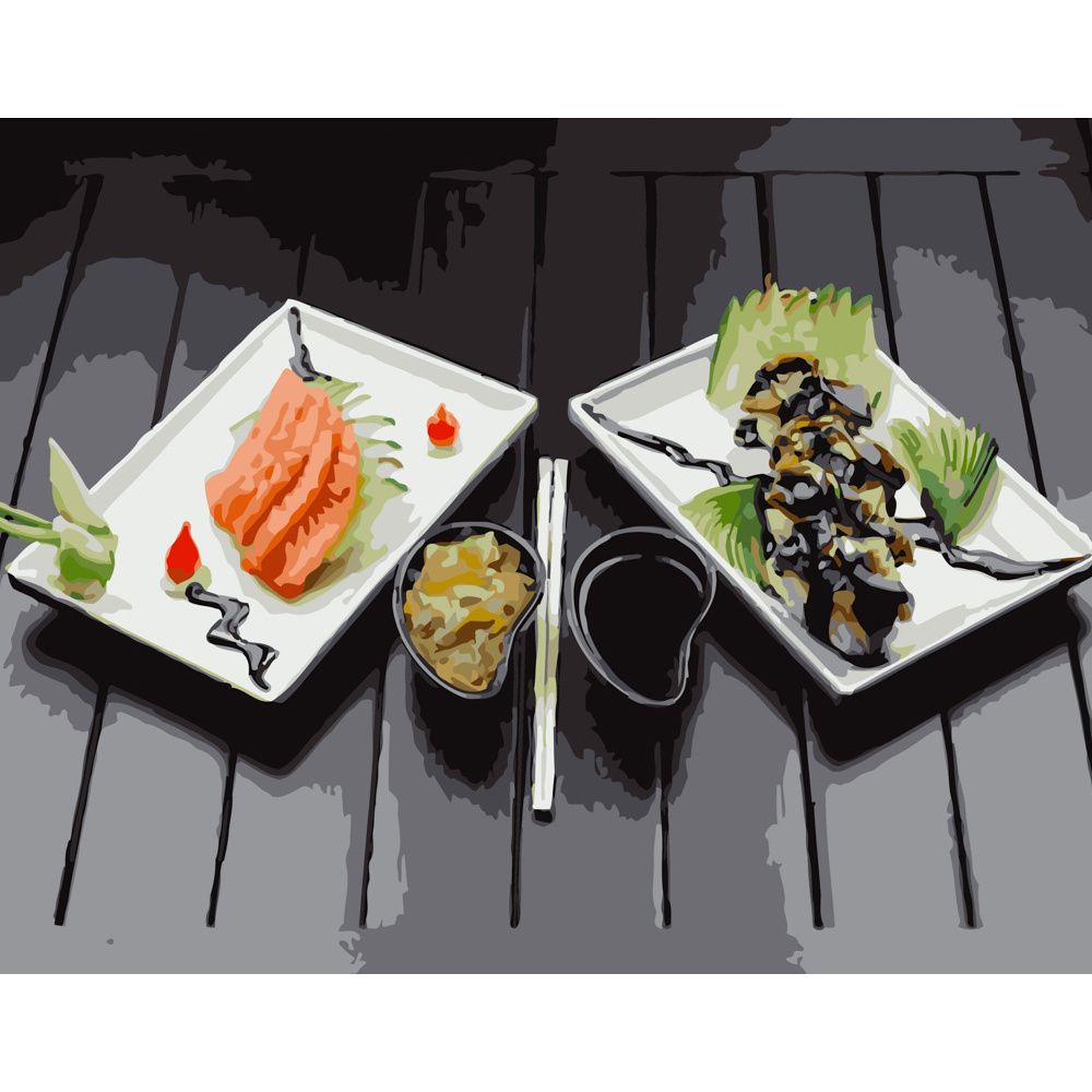 Картина за номерами Strateg ПРЕМІУМ Японські делікатеси розміром 40х50 см (GS286)