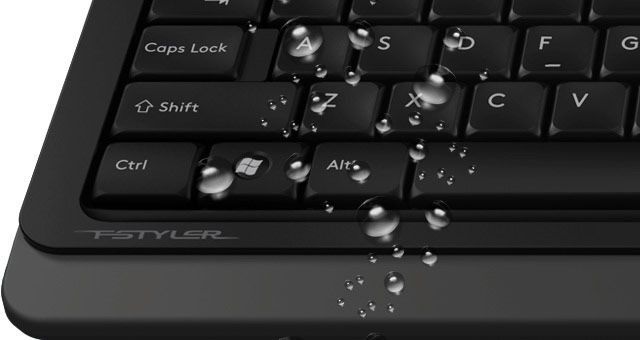 Дренажні отвори. Дренажні отвори забезпечують ефективне витікання води. Комфортні закруглені клавіші мінімізують відчуття втоми при тривалій роботі. Легкість натискання клавіш кінчиками пальців. Лазерне гравірування клавіш. Висока стійкість і довговічність. Швидкий доступ для швидкого доступу до офісних і мультимедійних додатків