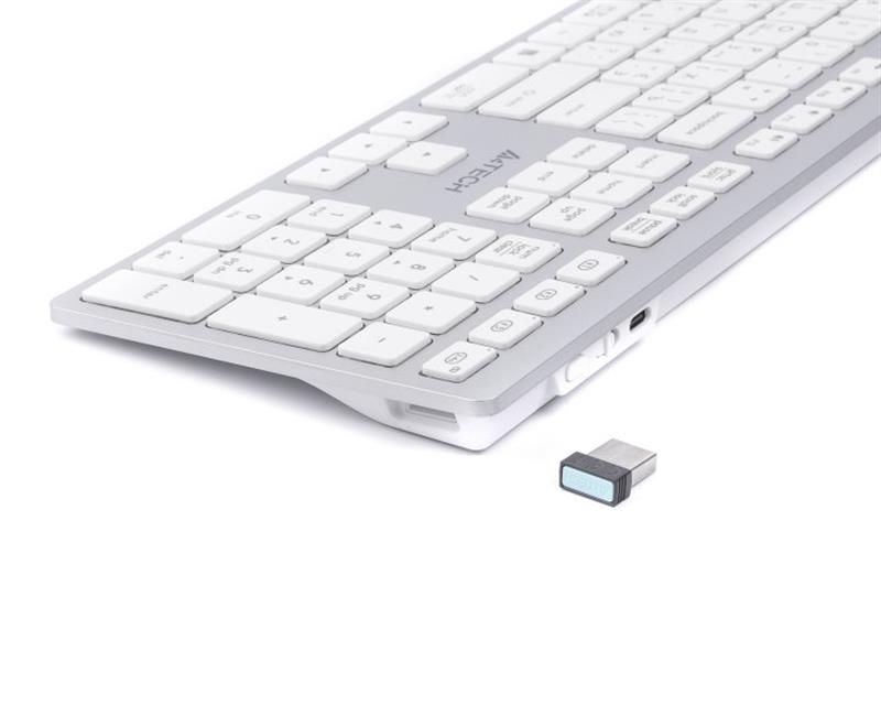 Два в одному. Клавіатура підтримує два режими підключення - за бездротовою технологією Bluetooth і за допомогою USB-ресивера 2.4 ГГц, і працює на відстані до 10 м, забезпечуючи швидку передачу даних без затримок