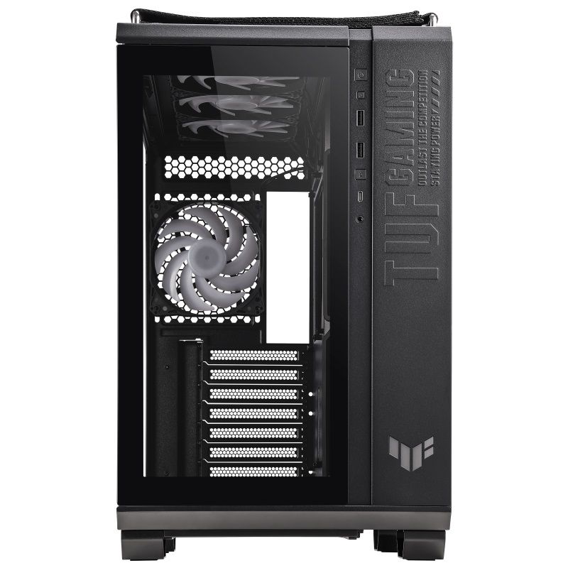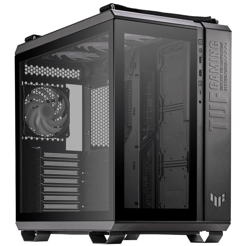 TUF Gaming GT502 Plus має двокамерну конструкцію, яка дозволяє створити окремі зони охолодження для процесора та відеокарти. Це забезпечує ефективне відведення тепла та стабільну роботу системи навіть при високих навантаженнях. Гнучкий розподіл потоків покращує загальну продуктивність.