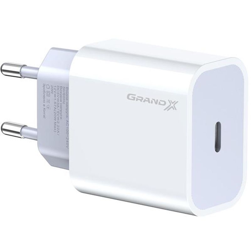 Мережевий зарядний пристрій Grand-X (1xUSB-C 20W) QC4.0, PD 3.0, FCP, AFC White (CH-770)