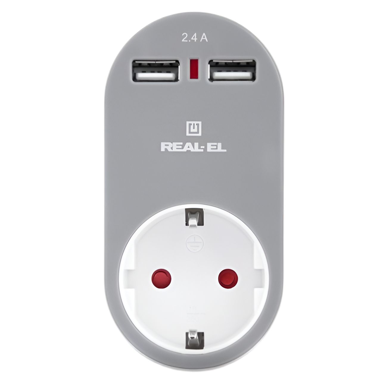 Мережевий зарядний USB-пристрій з розеткою REAL-EL CS-20, білий-сірий