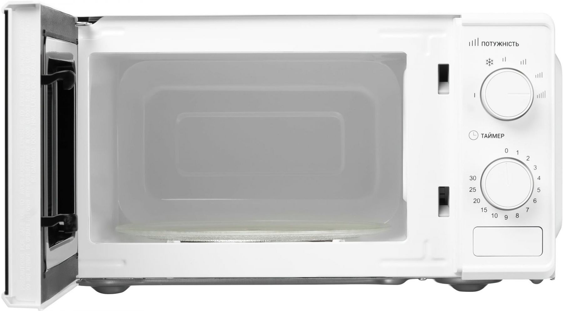 Для відкриття є ручка, а для управління - два поворотних перемикача. Один відповідає за потужність, а другий виконує функцію таймера.