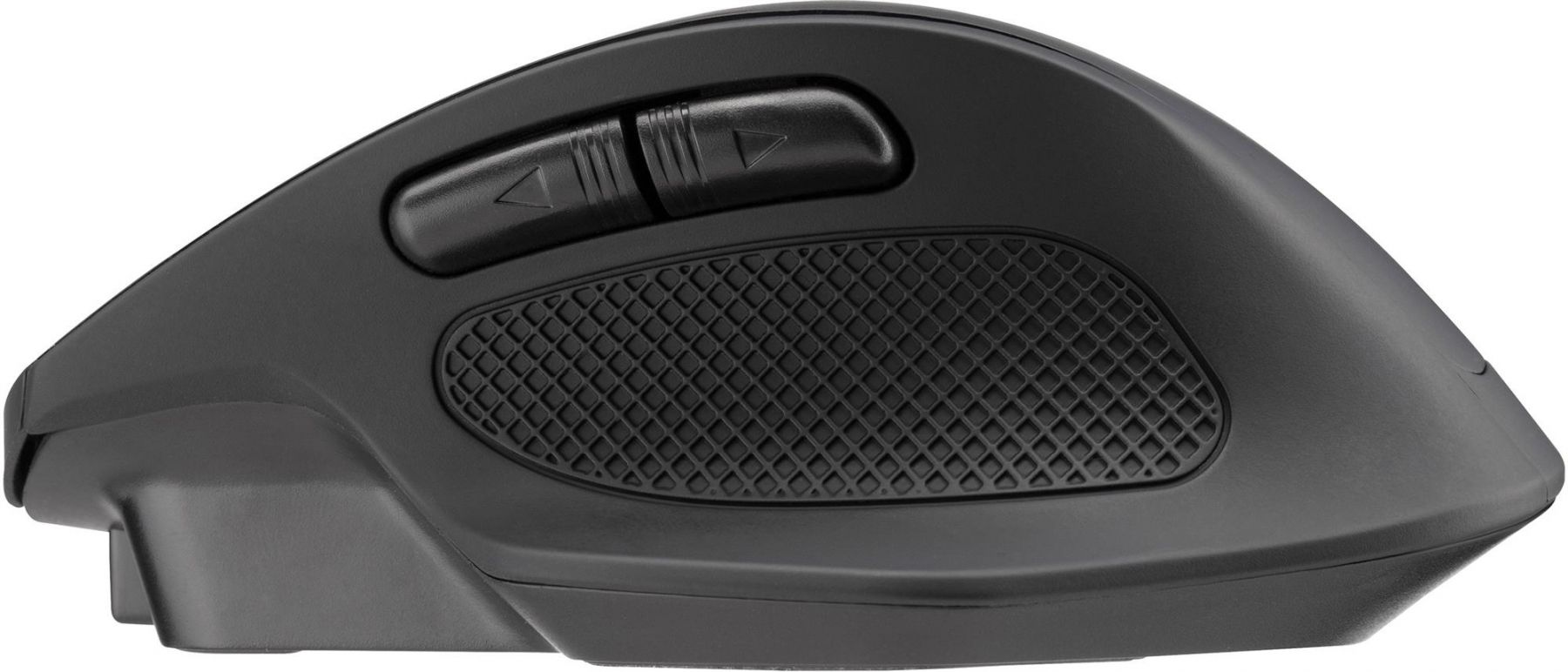 Повнорозмірна, велика мишка анатомічної форми в чорному стриманому дизайні та повністю покрита приємним на дотик Soft Touch фінішем, стане запорукою комфортної роботи. Додаткова підставка під великий палець, з фактурною вставкою, роблять мишку максимально зручною для тривалого використання. Вбудована літій-полімерна батарея забезпечить до 60 днів безперервної роботи, за повного заряду, а за потреби термінового заряджання мишки її також можна легко користуватися в дротовому режимі, під'єднавши до ПК для заряджання.