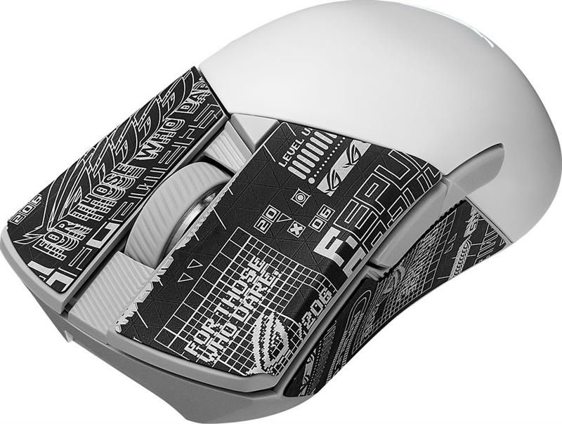 У комплект поставки входить стрічка для захоплення миші з малюнком ROG, яка попередньо нарізана. Просто наклейте її на Gladius III Wireless AimPoint, щоб краще тримати мишу і надати їй стильного вигляду.