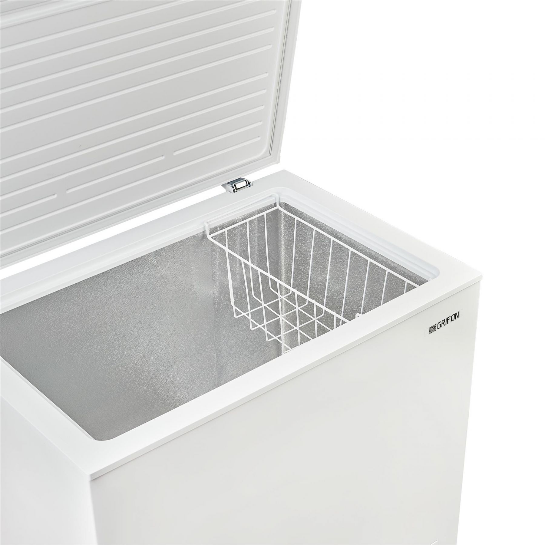 Насолоджуватися свіжими овочами та фруктами можна круглий рік разом із морозильною скринею GRML-200M. Вона розрахована на довготривалу глибоку заморозку продуктів, при цьому споживає небагато електроенергії. Інженери бренду Grifon створили оптимальне рішення у невисокому ціновому діапазоні, дотримуючись преміальних вимог до якості. Скриню купують ті, кому недостатньо невеликої морозильної камери в холодильнику. Ця модель за своїми розмірами та місткістю підійде для родини з 4-5 осіб.