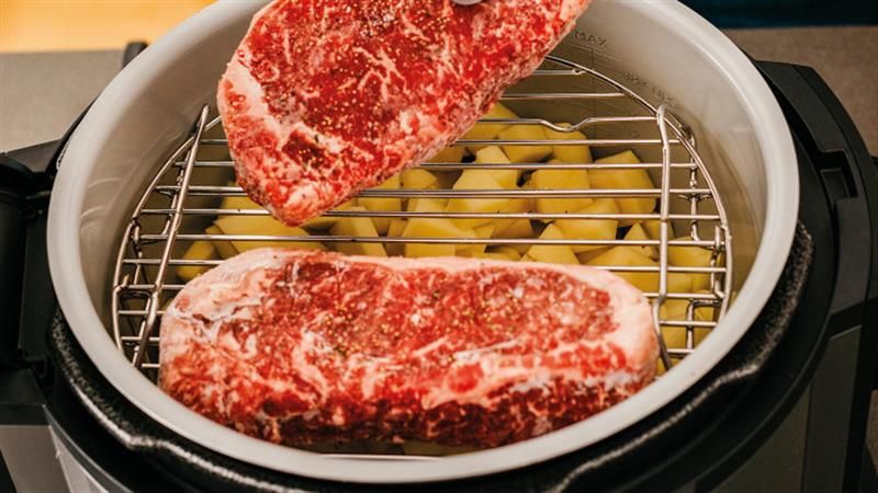 Функция Обжарка / Пассерование легко обработает ваш любимый стейк перед основным приготовлением, карамелизирует лук, поджарит арахис и подготовит основу для соуса непосредственно в скороварке.