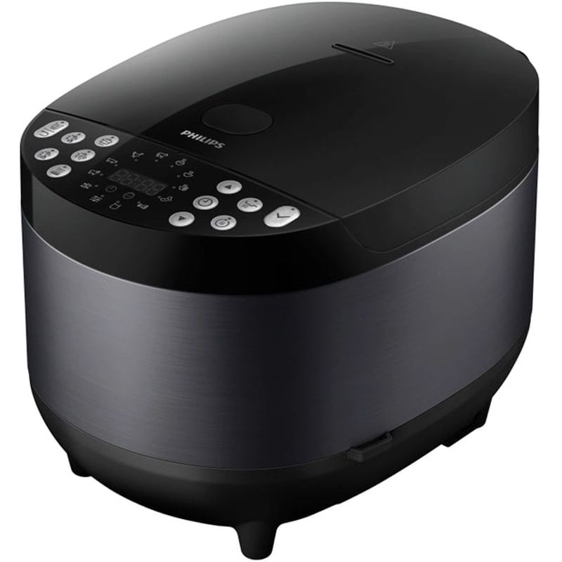 Ємність для приготування з 5-шарового алюмінієвого сплаву з антипригарним покриттям має підвищену зносостійкість. Натисніть кнопку і насолоджуйтеся незмінно смачними стравами, приготованими за допомогою різноманітних програм - від приготування на пару до запікання. Простий у використанні таймер відтермінування старту до 24 годин і автоматична функція підтримання температури протягом 12 годин допоможуть у своєчасному приготуванні, а також підтримці температури страв перед подаванням на стіл.