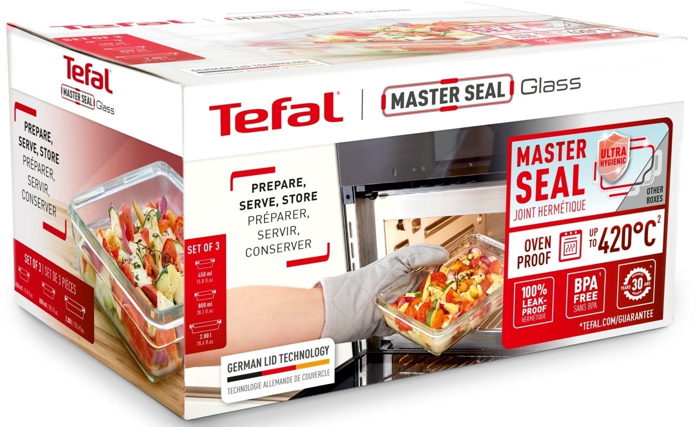 Від духовки або мікрохвильової печі до столу, холодильника або морозильної камери - Набір універсальних форм з кришками Tefal Master Seal - ідеальне рішення для будь-якої ситуації.