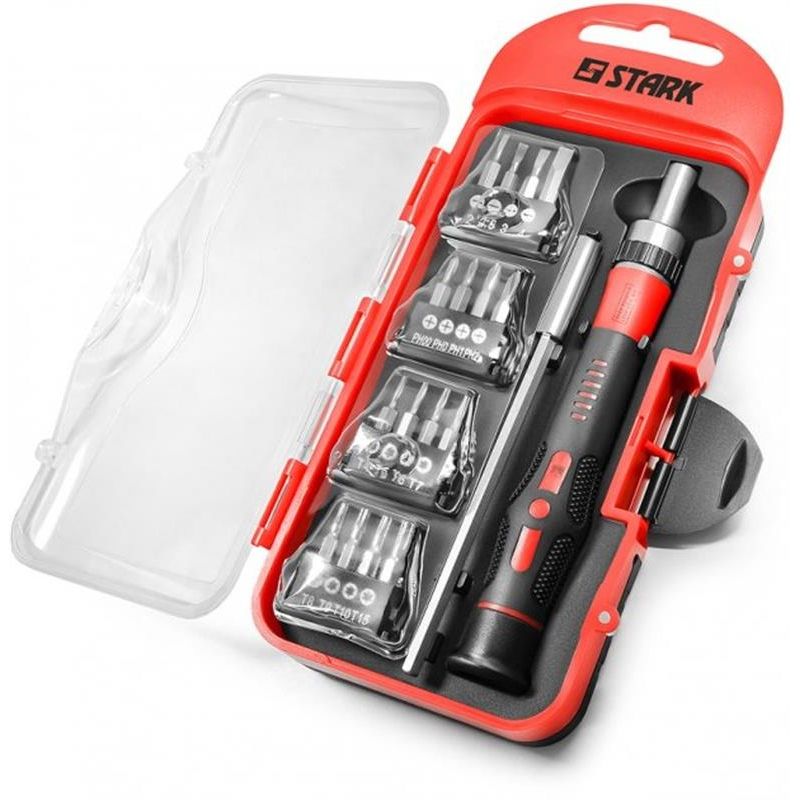 Універсальний набір викруток Stark SBKIT-218 ідеально підходить для ремонту мініатюрних речей і електроніки. Практично незамінна річ для дому. Матеріал високоякісна хромованадієва сталь. Буде надійним партнером вдома, в офісі або в сервісному центрі. Цей набір завжди можна взяти з собою в дорогу: він не займе багато місця, зате завжди виручить у відповідальний момент.