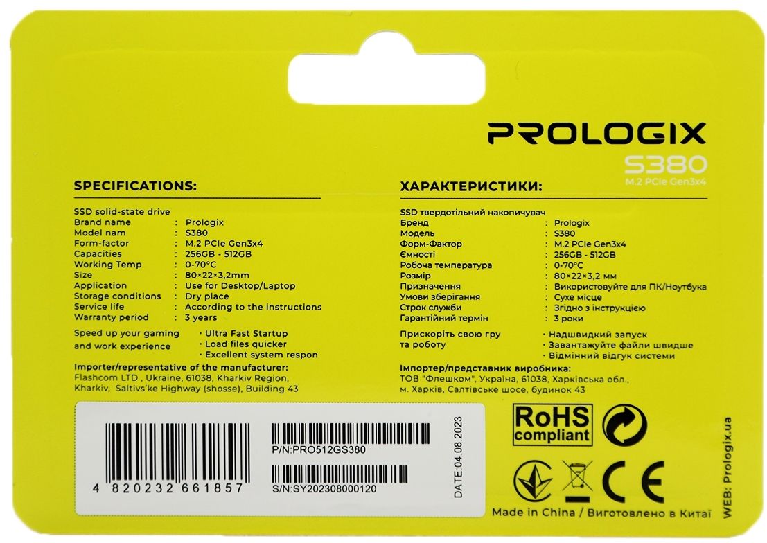 Накопичувач SSD 512GB Prologix S380 M.2 2280 PCIe 3.0 x4 NVMe 3D TLC (PRO512GS380)