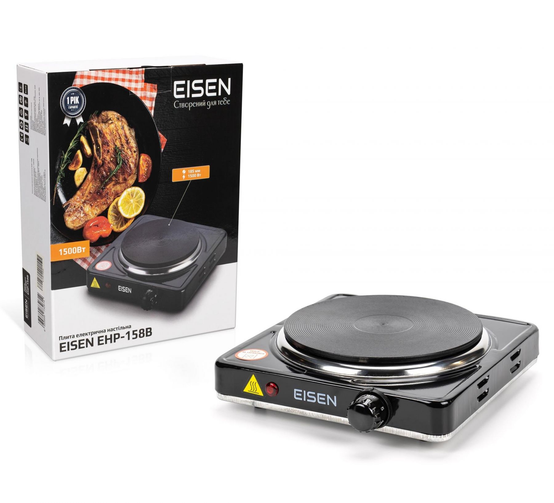 EISEN EHP-158B має спеціальний термостат, який захищає її від перегріву. Ця функція забезпечує безпеку користування і продовжує термін служби електричної плити.