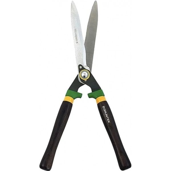 Ножиці для живоплоту GRUNTEK Panthera 640мм/230мм - призначені для професійного застосування. Хвилеподібні леза SK5 з прецизійним заточуванням дозволяють виконувати точні та потужні зрізи навіть з невеликими гілками. Лезо швидко і легко знімається для заточування. З новими ергономічними ручками з ясеню та надійними упорами для зручного різання. Округла форма ручки забезпечує зручне захоплення для маленьких і великих рук. Нахил леза та рукоятки полегшує обрізування країв та гілок у важкодоступних місцях