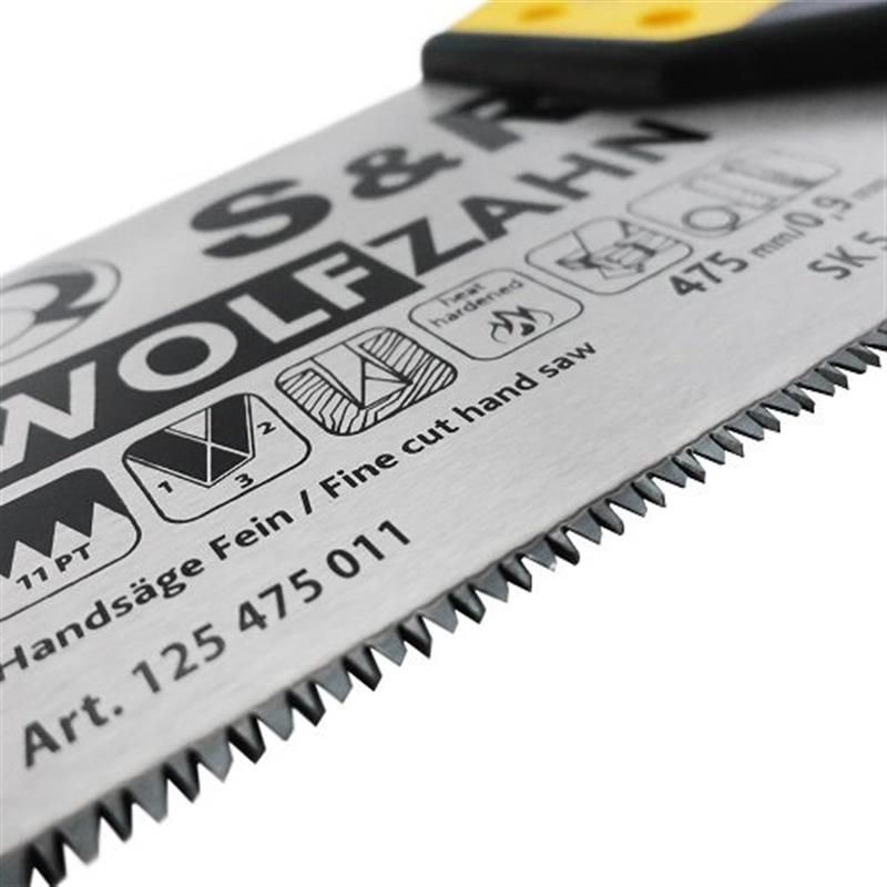 S & R 475 мм / 11 зубів - ножівка для розпилу дерев’яного матеріалу, заготовок з МДФ, ДСП, фанери і пластика. Полотно виготовлене з високоякісної сталі SK5, що надає пилі міцності для роботи з матеріалами різної твердості.