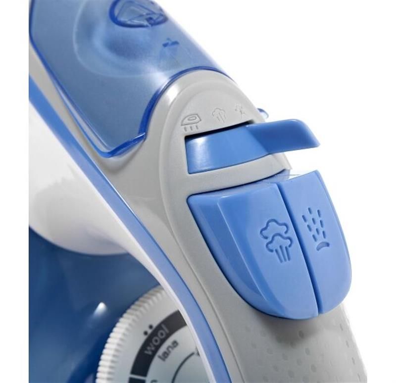 Система парової прасування відмінно продумана за рахунок декількох складових: резервуара для води (400 мл), 49 перфораций в підошві для виходу струменів пари і регулятор інтенсивності його подачі. Використовуючи їх, ви зможете відпарювати речі горизонтально або вертикально постійним паром з силою 30 г /хв.
