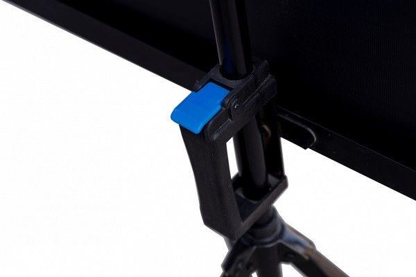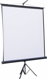 Мобільний екран із триногою в міцному корпусі, придатний для щоденного використання. Механізм автоматичного блокування керує регулюванням висоти. Чорний зворотний бік матеріалу запобігає проникненню світла. Обладнаний стандартним усувачем трапецієдального спотворення. Екран виготовлений із довговічного та легко відмиваного матеріалу MaxWhite.