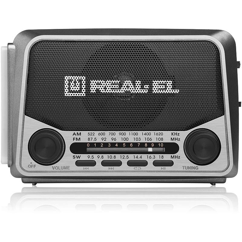 Лінійка радіоприймачів поповнилася моделлю REAL-EL X-525. Пристрій має вбудований FM / AM / SW радіо, поворотну телескопічну антену, можливість відтворення музики з USB flash і microSD карт пам’яті і вбудовану батарею.