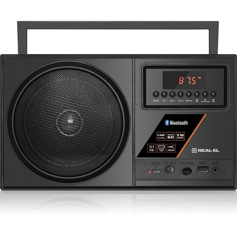 REAL-EL X-700 — не просто радіоприймач, а справжній мобільний аудіоцентр. Крім прийому радіопрограм, він може виступати в якості Bluetooth-колонки та підключатися до зовнішніх джерел сигналу за допомогою дроту. Наявність зовнішнього плеєра при цьому необов’язкове, пристрій підтримує відтворення MP3-файлів з накопичувачів USB-flash і карт microSD