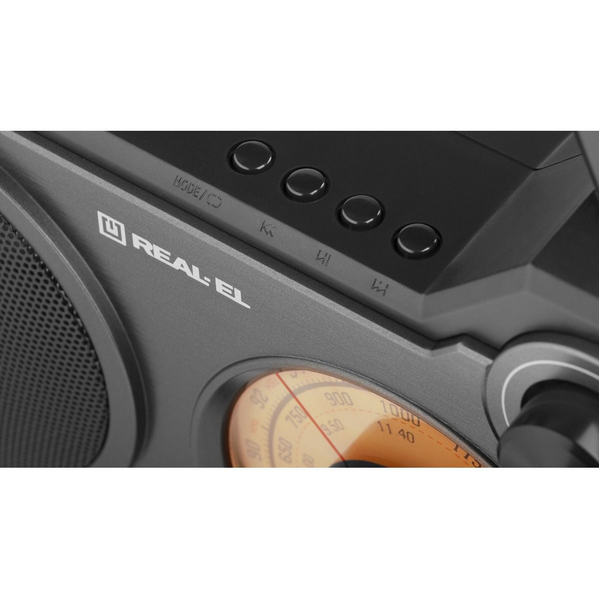 Радіоприймач REAL-EL X-703 - один із старших представників лінійки приймачів від REAL-EL, що має максимальний спектр можливостей. Основна його функція - звичайно, прослуховування радіоефіру. Вбудований тюнер дозволяє слухати FM/AM та короткохвильове SW-радіо. За впевнений прийом в будь-яких умовах відповідає поворотна телескопічна антена.