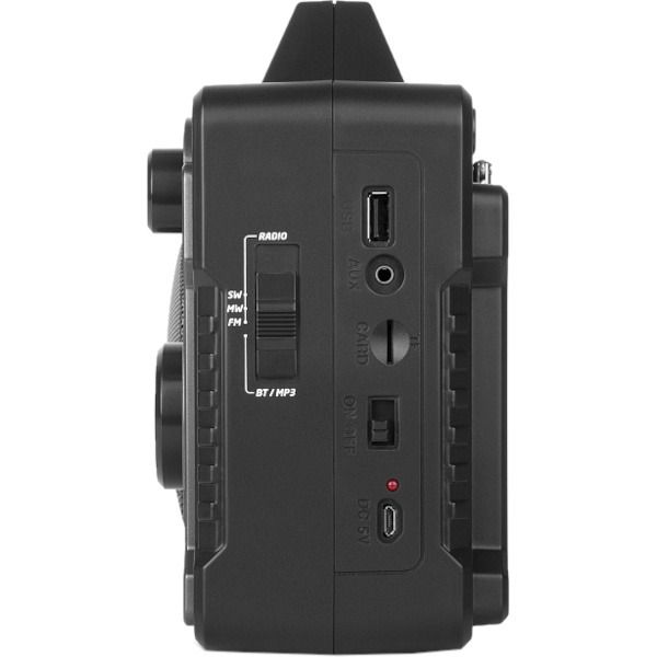 Звучить приймач голосно й розбірливо завдяки підсилювачу потужністю 8 Вт та динаміку діаметром 90 мм. Довгострокову автономну роботу гарантує літій-іонний акумулятор ємністю 1500 мАг, заряджати який можна від будь-якого пристрою з USB-виходом за допомогою кабелю, що йде в комплекті.