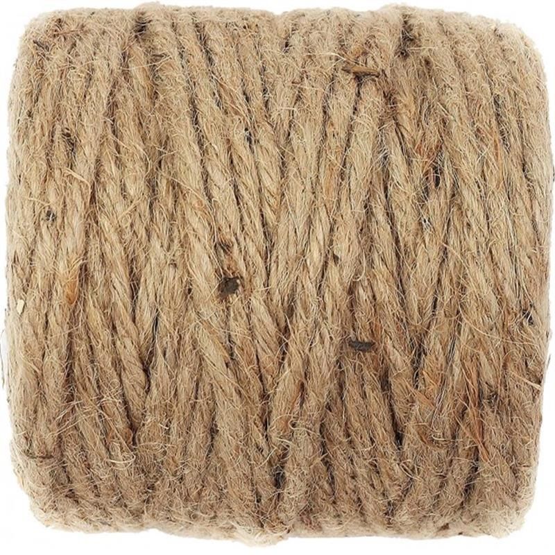 Джутовий садовий шпагат, діаметр 6 мм, довжина 60 м, натуральний колір, 100% джутове волокно.