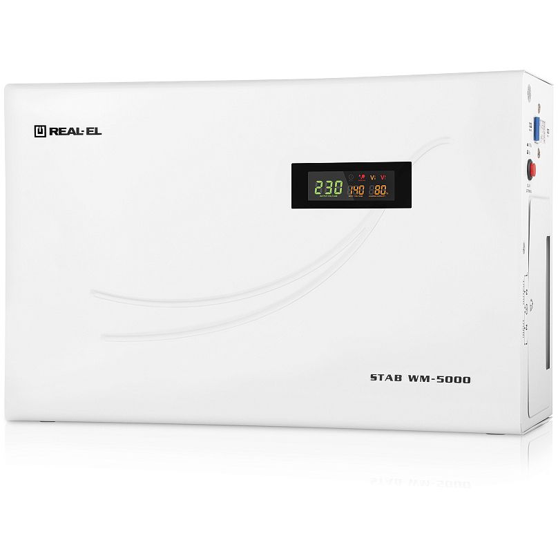 Стабілізатор напруги мережі REAL-EL STAB WM-5000 призначено для забезпечення якісним і стабільним електроживленням різних споживачів в умовах великих за значенням та тривалістю відхилень напруги електричної мережі від номінальної, захисту пристроїв-споживачів від перевантаження, від дії високочастотних та імпульсних перешкод.